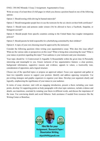 ENGL 1301.062 Miranda 1 Essay 2 Assignment: Argumentative Es