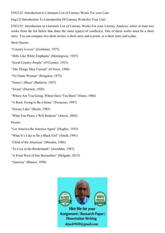 ENG125: Introduction to Literature List of Literary Works Fo