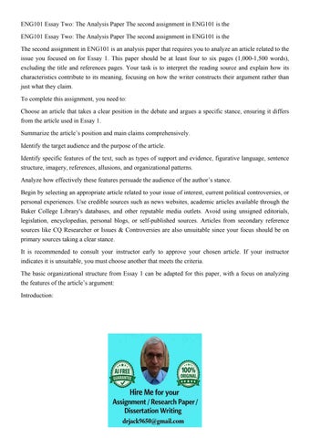 ENG101 Essay Two: The Analysis Paper The second assignment i