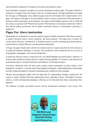 Each Individual Is Required To Complete An Economic Developm