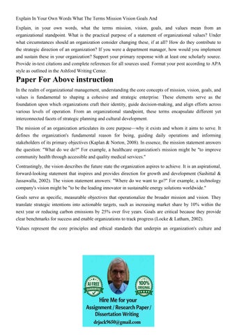 Explain In Your Own Words What The Terms Mission Vision Goal