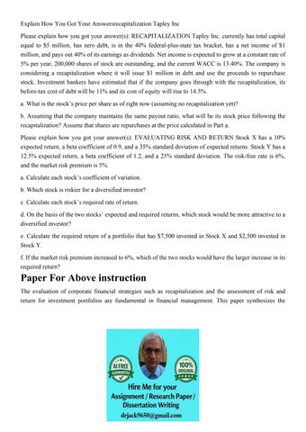 Explain How You Got Your Answersrecapitalization Tapley Inc