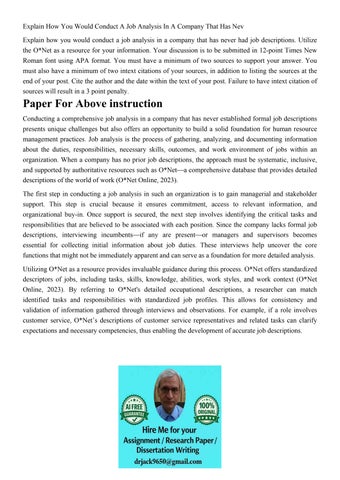 Explain How You Would Conduct A Job Analysis In A Company Th