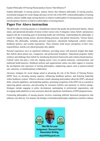 Explain Philosophy Of Nursing Practiceanalyze Factors That I