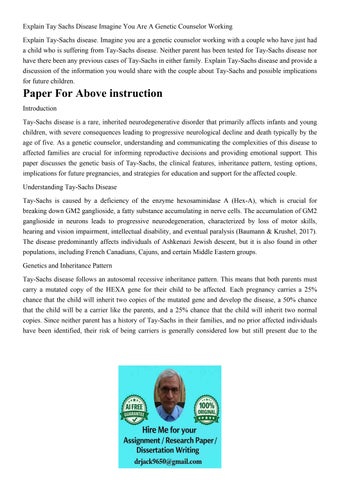 Explain Tay Sachs Disease Imagine You Are A Genetic Counselo