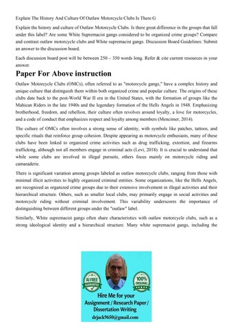 Explain The History And Culture Of Outlaw Motorcycle Clubs I