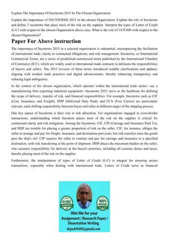 Explain The Importance Of Incoterms 2015 In The Chosen Organ
