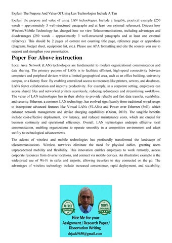 Explain The Purpose And Value Of Using Lan Technologies Incl