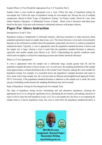 Explain When A Z Test Would Be Appropriate Over A T Testutil