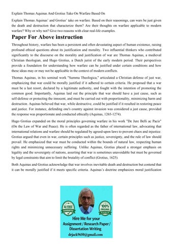 Explain Thomas Aquinas And Grotius Take On Warfare Based On