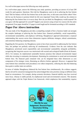 In a well-written paper answer the following case study ques