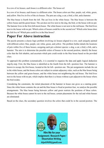 In a row of six houses, each house is a different color. The