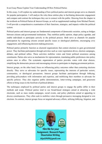 In an Essay Please Explain Your Understanding Of How Politic
