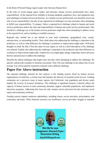 In the Roles Of Social Change Agent Leader And Advocate Huma