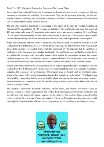 In the Text Of Psychological Testing And Assessment We Learn