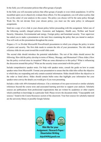 In this final assignment, students will complete a comprehen