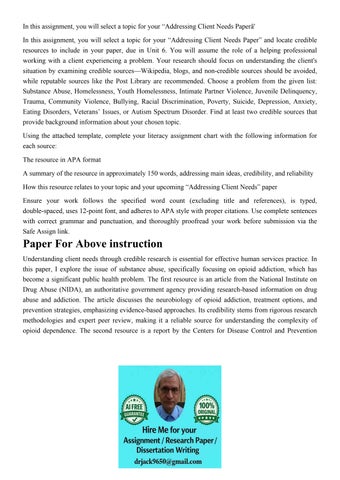 In this assignment, you will select a topic for your “Addres
