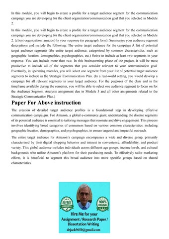 In the Previous Weeks You Developed An Overall Strategy For