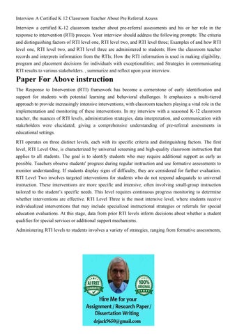 Interview A Certified K 12 Classroom Teacher About Pre Refer