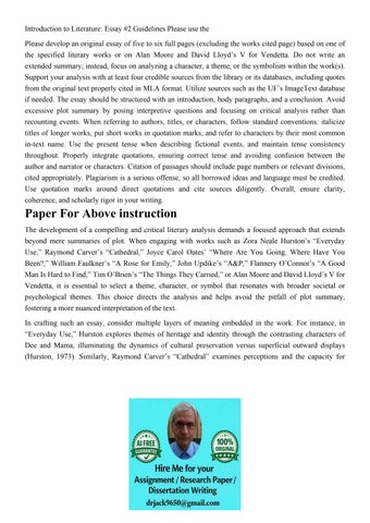 Introduction to Literature: Essay #2 Guidelines Please use t