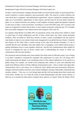 Introductionin Todays Work Environment Managers And Team Lea