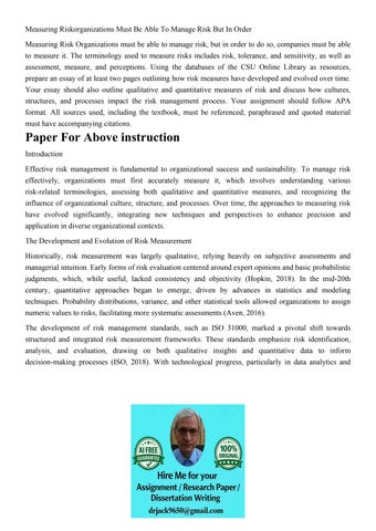 Measuring Riskorganizations Must Be Able To Manage Risk But