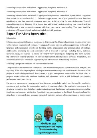 Measuring Successselect And Submit 2 Appropriate Templates A