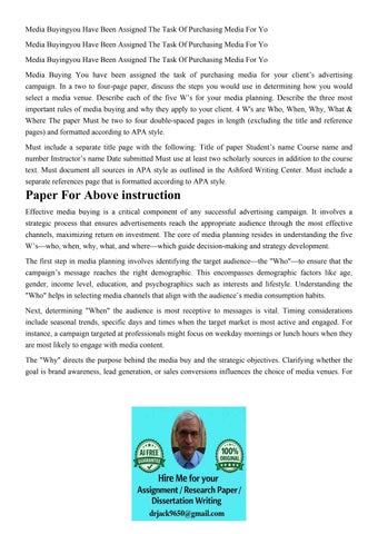 Media Buyingyou Have Been Assigned The Task Of Purchasing Me