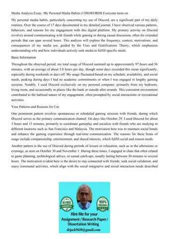 Media Analysis Essay: My Personal Media Habits (1500)WORDS E
