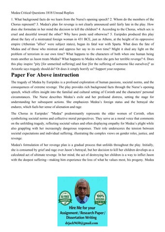 Medea Critical Questions 1818 Unread Replies 1. What backgro