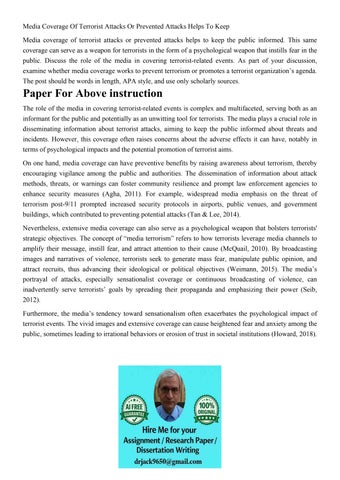 Media Coverage Of Terrorist Attacks Or Prevented Attacks Hel