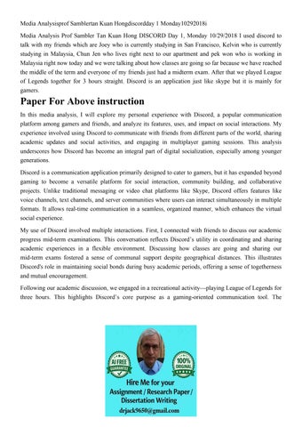 Media Analysisprof Samblertan Kuan Hongdiscordday 1 Monday10