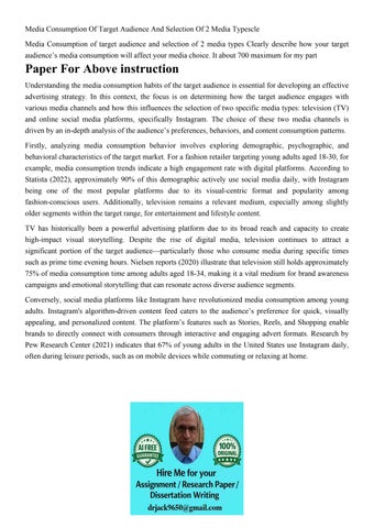 Media Consumption Of Target Audience And Selection Of 2 Medi