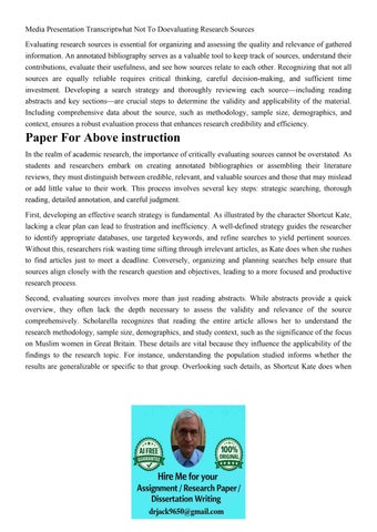 Media Presentation Transcriptwhat Not To Doevaluating Resear