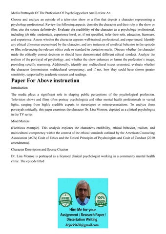 Media Portrayals Of The Profession Of Psychologyselect And R