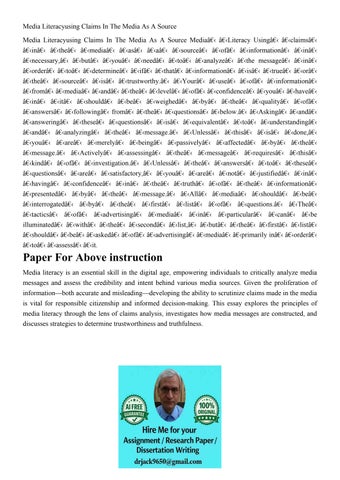 Media Effects Research Paper Guidelinesmedia Effects Also Kn