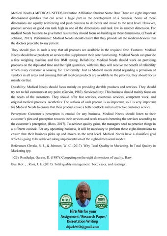 Medical Needs 4 MEDICAL NEEDS Institution Affiliation Studen
