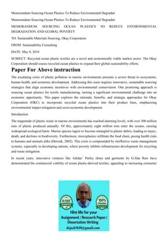 Memorandum Sourcing Ocean Plastics To Reduce Environmental D