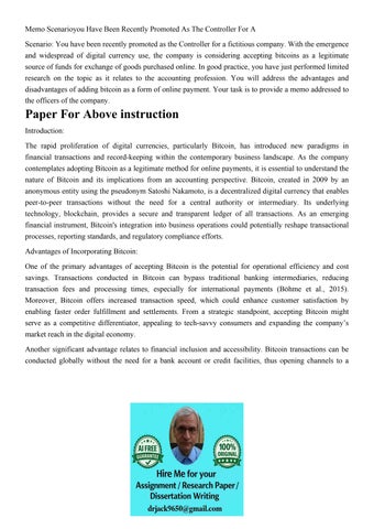 Memo Scenarioyou Have Been Recently Promoted As The Controll