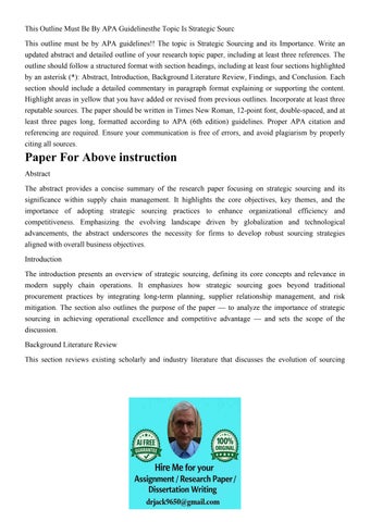 This Outline Must Be By APA Guidelinesthe Topic Is Strategic