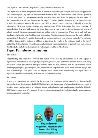 This Paper Is To Be About A Ergonomic Topic Of Particular In
