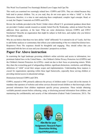 This Week You Examined Two Seemingly Related Laws Coppa And
