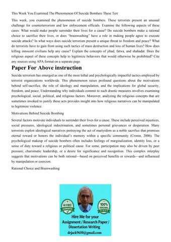 This Week You Examined The Phenomenon Of Suicide Bombers The
