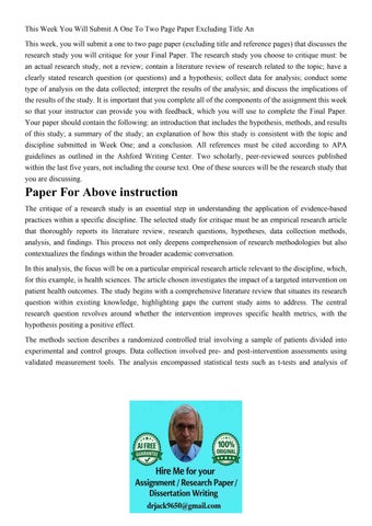 This Will Be A Brief Discussioncritique Of One Specific Arti