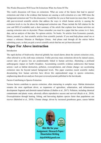 This Weeks Discussion Will Focus On Extinctions What Are Som