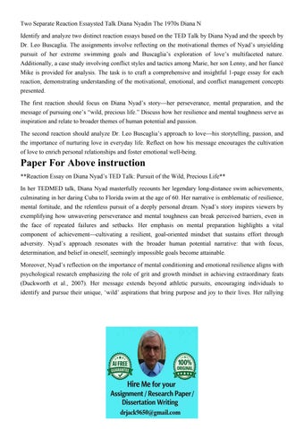 Two Separate Reaction Essaysted Talk Diana Nyadin The 1970s