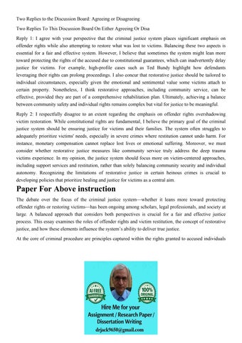 Two Replies to the Discussion Board: Agreeing or Disagreeing