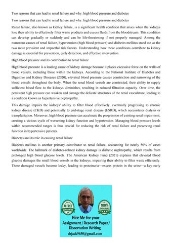 Two reasons that can lead to renal failure and why: high blo
