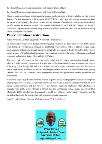Two Small Discussion Board Assignments with Specific Citatio