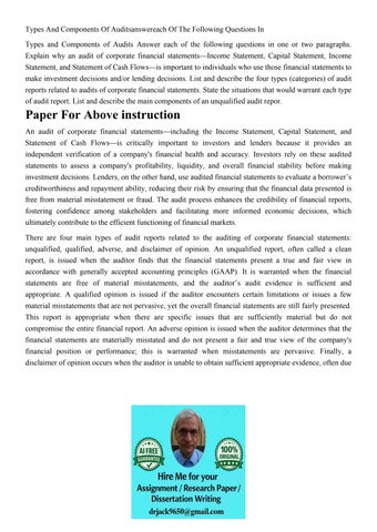Types And Components Of Auditsanswereach Of The Following Qu